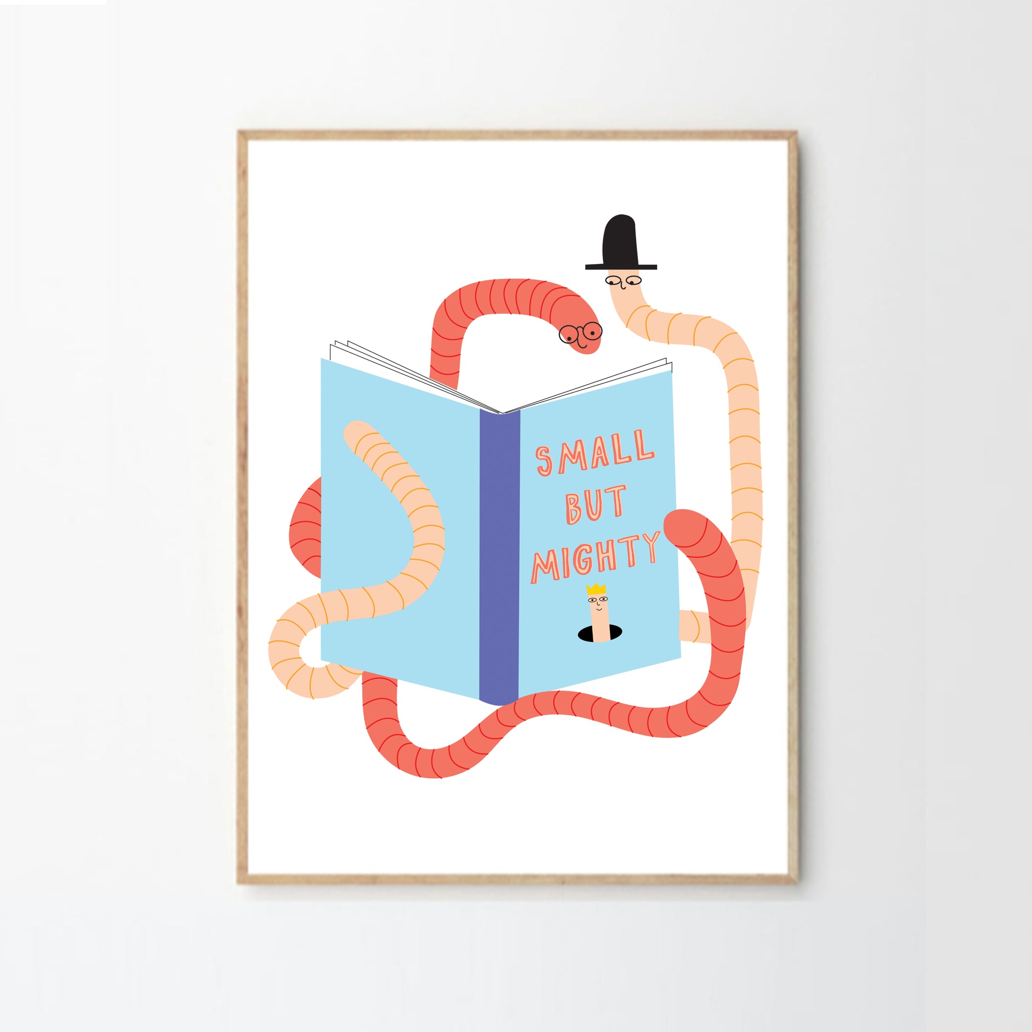Worms may be small in size, but they have a mighty impact! This charming illustrated print, featuring a few adorable book-loving worms, would look lovely in any child’s room.